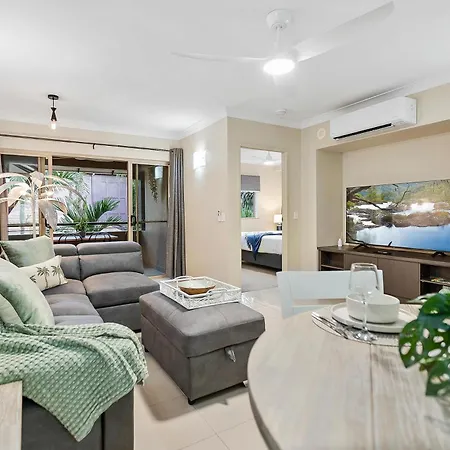 Die 1-Zimmer-Ferienwohnung Palmview Heights - 9 Pools Bbq & Gym Westcourt befindet sich ungefähr 20 Fußminuten vom Aquarium Cairns entfernt sowie in unmittelbarer Nähe zu verschiedenen Sehenswürdigkeiten der Gegend. WLAN und Parkplätze gehören zu den wichtigsten Annehmlichkeiten, die den Gästen zur Verfügung stehen.